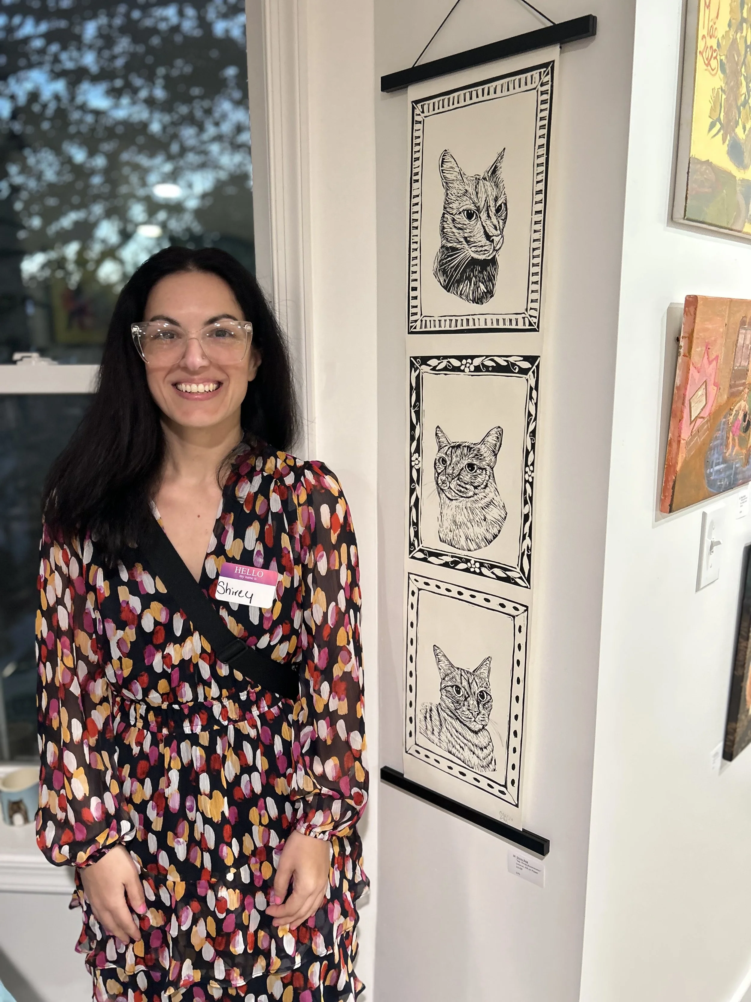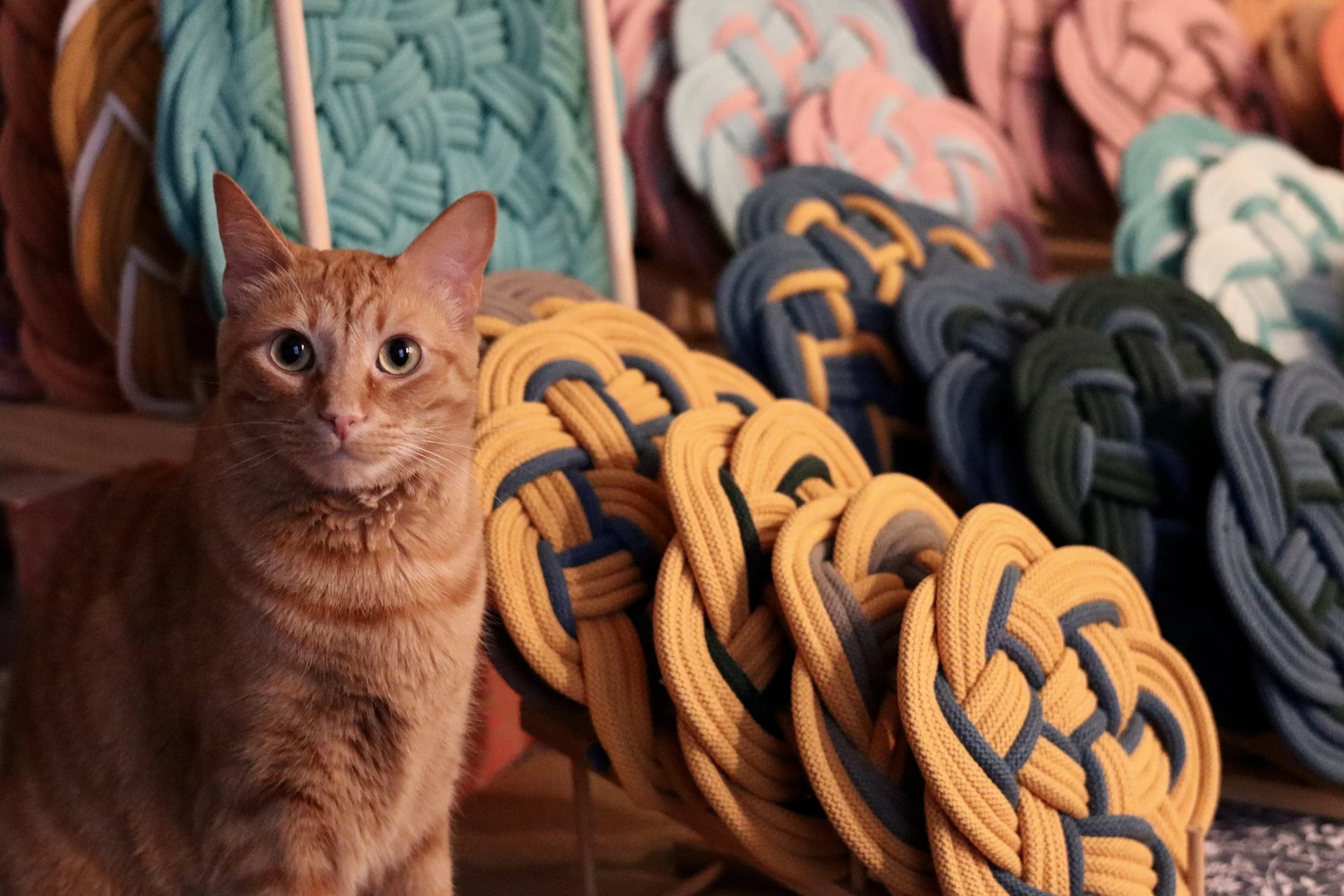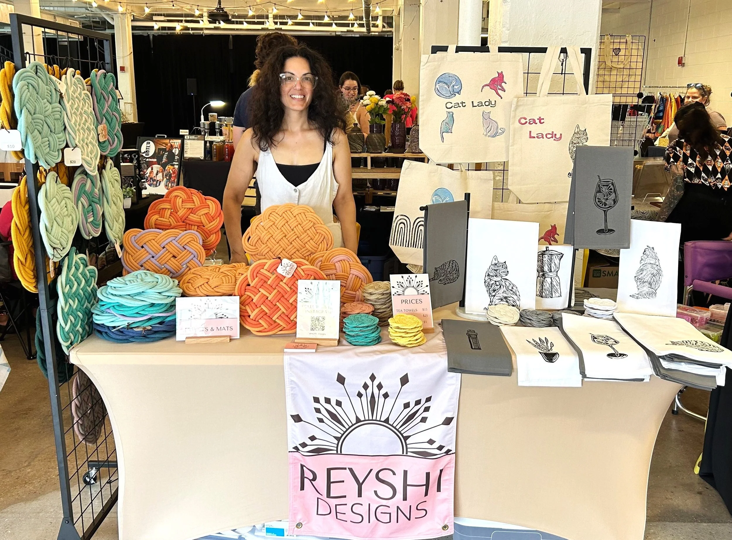 While I have always been doing art of some sort, I established Reyshi Designs in 2019 as a creative outlet to complement my technology and data-driven career. Initially, my focus centered on macramé wall hangings and plant hangers. However, over the past few years, I have pivoted towards knot-based home goods and the occasional linocut print. My creations and me can be found at markets throughout Maryland. My inspiration is simple, just the things I enjoy, such as vibrant colors, knots, linocut art, and, of course, my cats. I am so grateful that I get to share what I love with others.